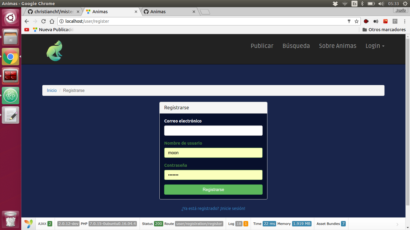 Para registrarnos en la aplicación, primero tenemos que pulsar en la opción del menú "Login" y después en la opción "Registrarse". Esta opción nos llevara a un formulario de registro. En el que tendremos que rellenar los campos que aparecen para registrarnos en la aplicación.